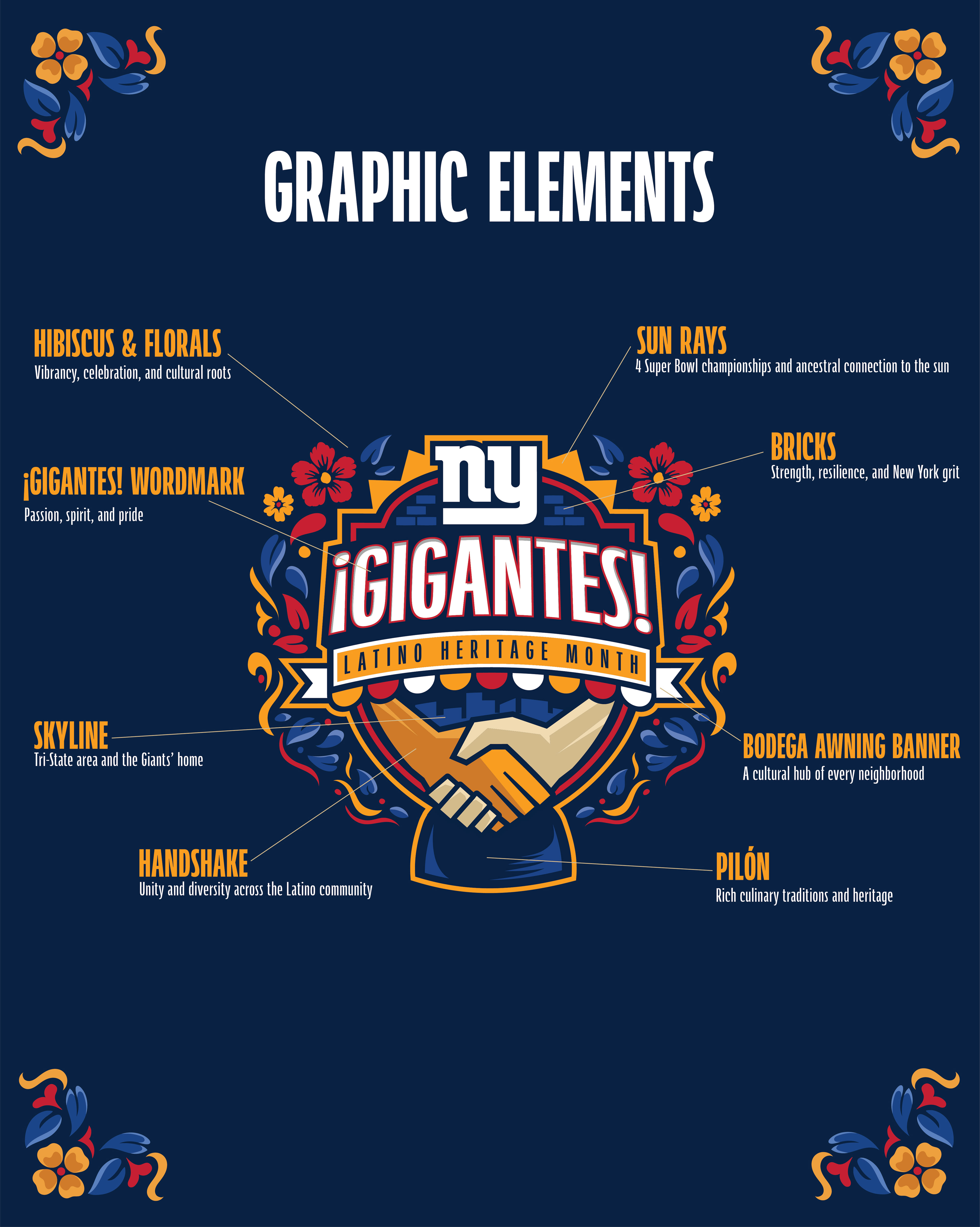 I led creative direction and identity design for the New York Giants Latino Heritage Month brand refresh, guiding the project from concept through execution. My role focused on defining the cultural intent of the initiative and shaping a visual system the team could own with confidence.