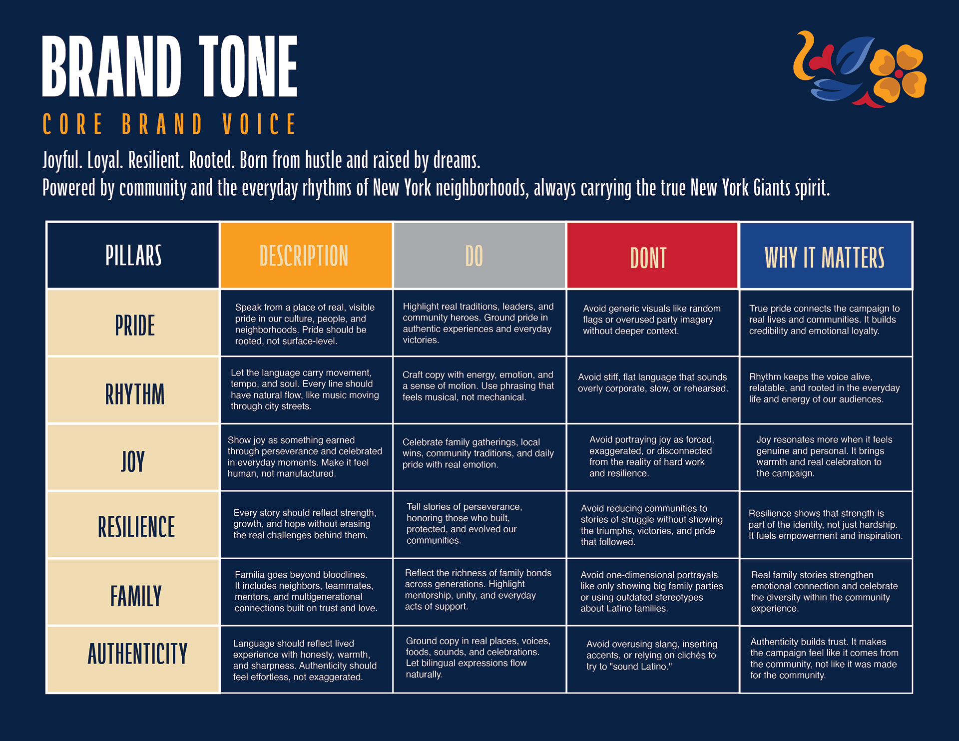 The New York Football Giants set out to celebrate Latino Heritage Month with the intention of setting a new standard for how cultural moments are approached within the league. The goal was not a one off campaign, but a lasting identity rooted in community, pride, and lived experience rather than surface level symbolism.