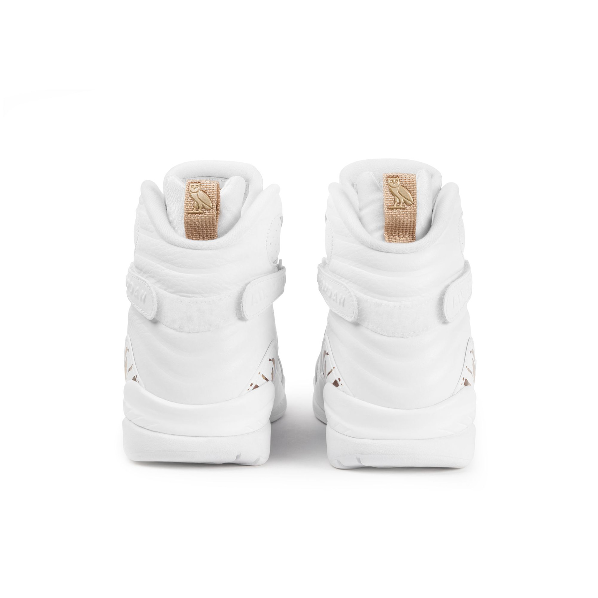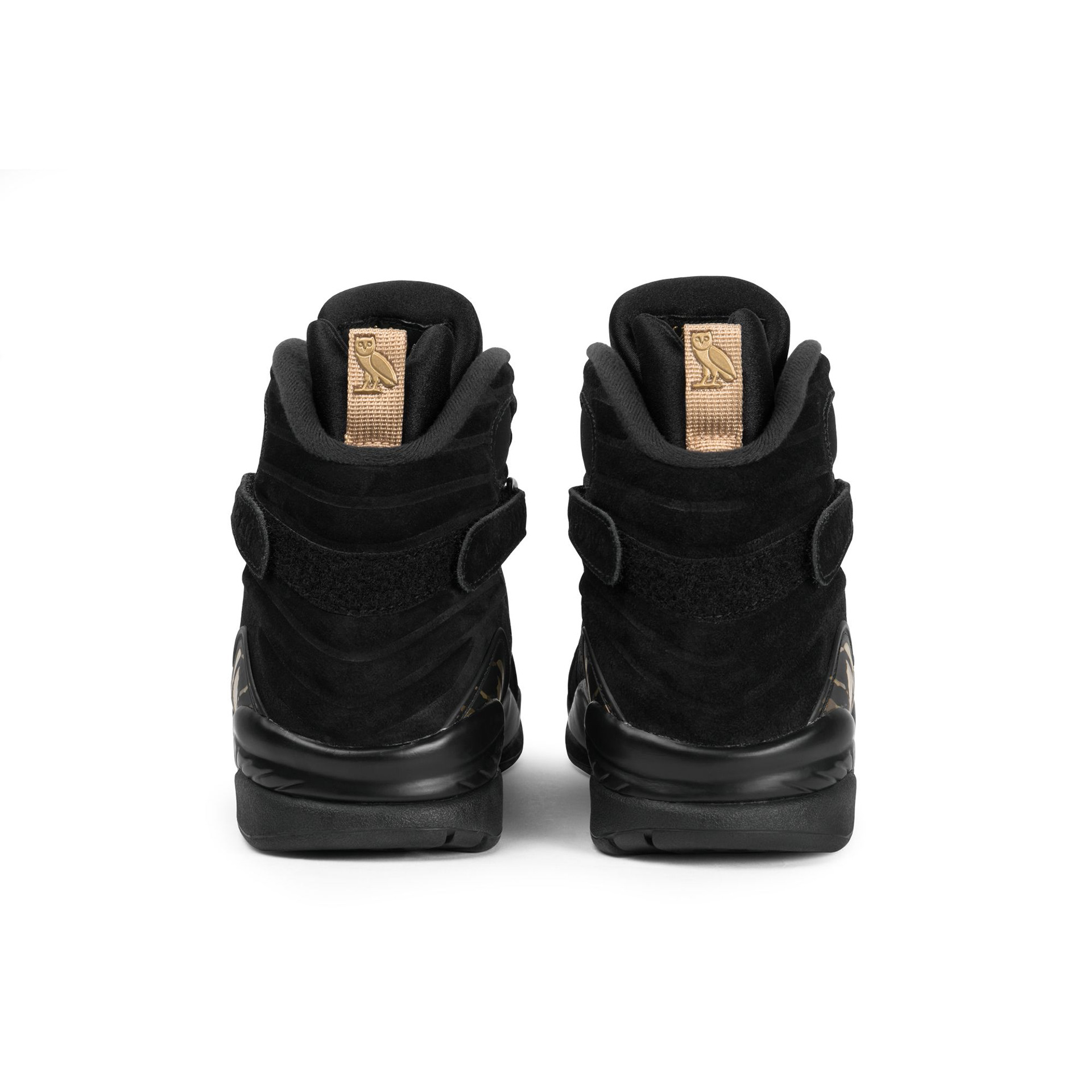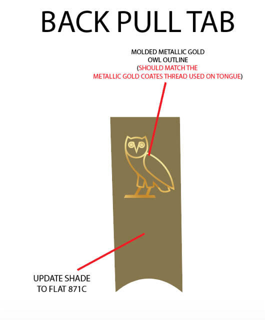 Two signature OVO cues anchor the footwear in the brand’s retail world. The woven Welcome label behind the tongue references the greeting found at every OVO flagship, while the gold Owl on the heel mirrors the sculptures placed throughout the stores. Core Jordan Brand elements, including the red Jumpman at the tongue, ground the reinterpretation firmly within the franchise.