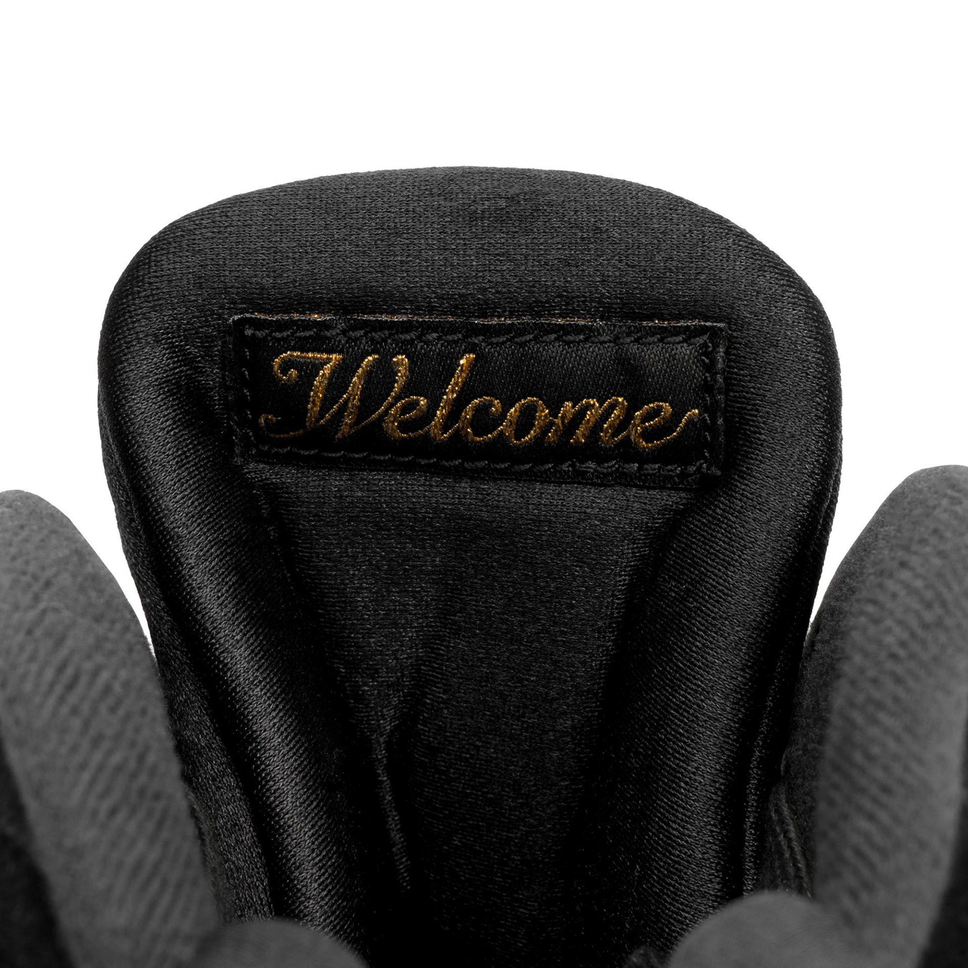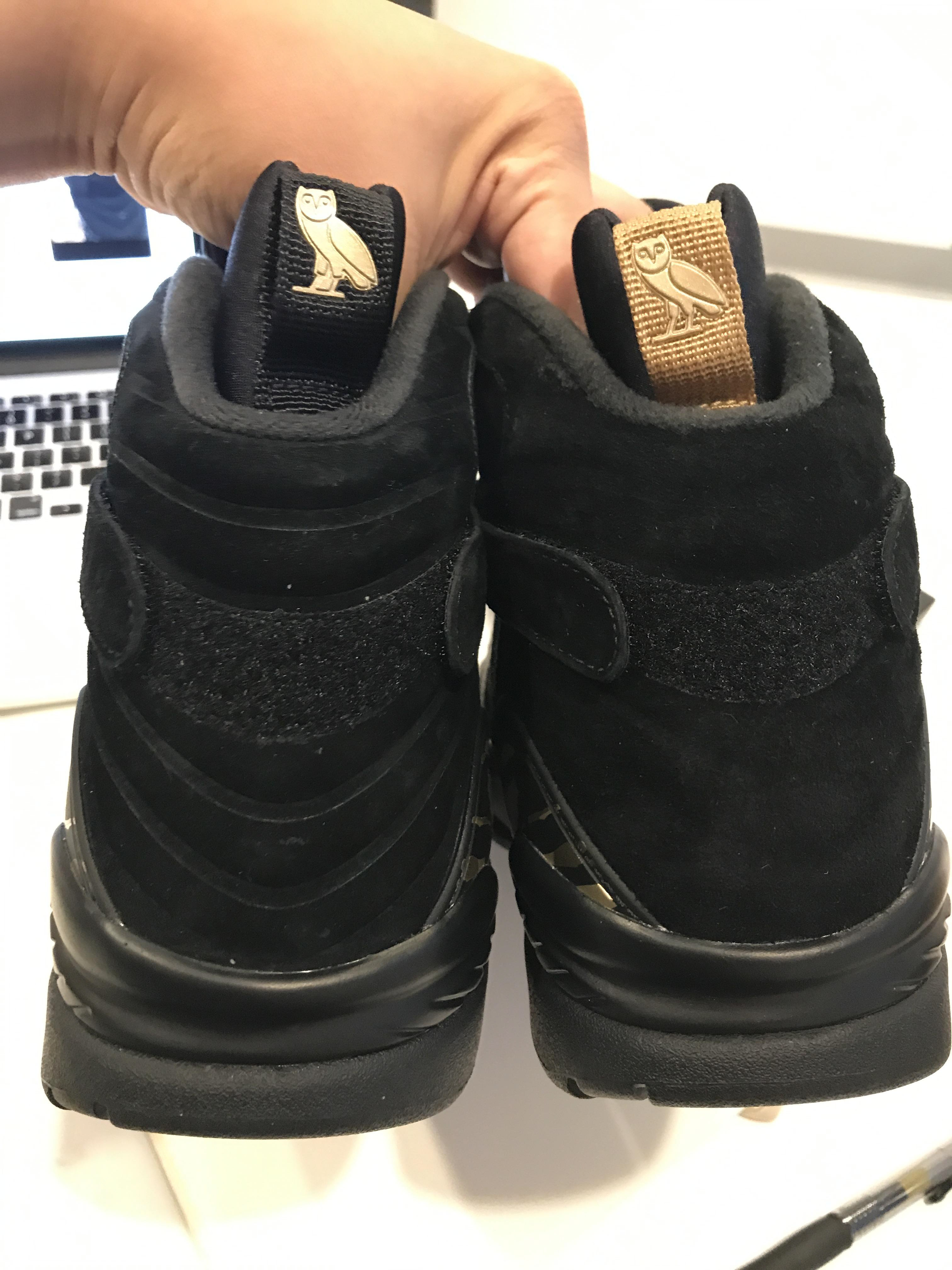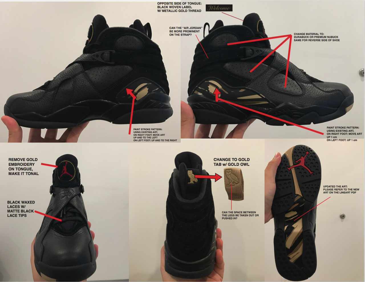 Two signature OVO cues anchor the footwear in the brand’s retail world. The woven Welcome label behind the tongue references the greeting found at every OVO flagship, while the gold Owl on the heel mirrors the sculptures placed throughout the stores. Core Jordan Brand elements, including the red Jumpman at the tongue, ground the reinterpretation firmly within the franchise.